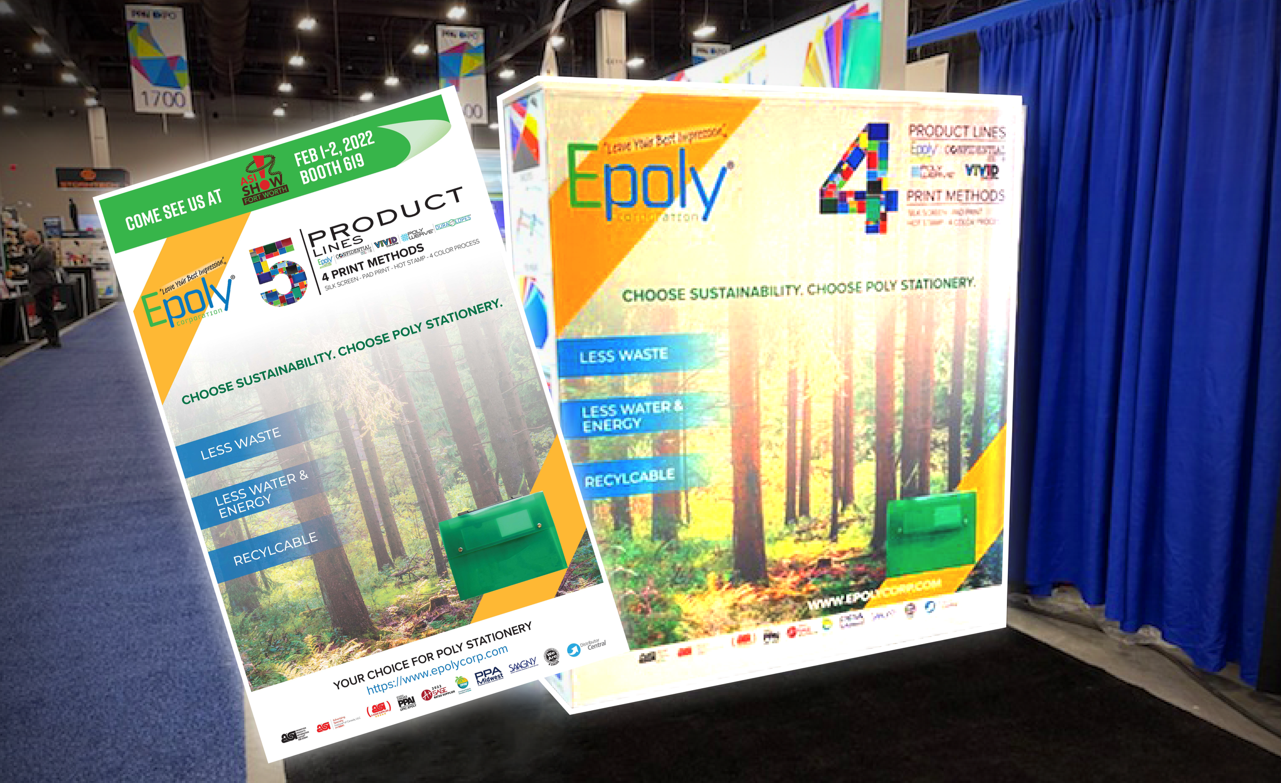 Left to Right: Epoly 2023 Catalogue Cover, ppb magazine july 2022 ad, Sell All Summer Email Blast, committed to sustainability, Closeout Promotion, Choose Sustainability Email Blast, Epoly 2022 Catalogue Cover